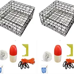 Vinyl Coated Crab Trap (24″x24″x12″H) with 4 one way door.100′ Rope Crab Clipper (Good for WA,OR & AL) Durable 4 Arm Harness Bait Bag with rubber locker easy to open and clase Red/White Float