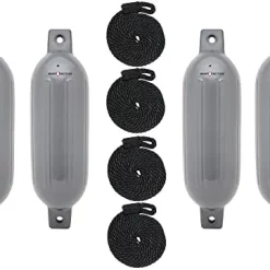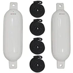 - Includes four 6.5″ x 22″ BoatTector fenders and four 3/8″ x 5′ fender lines