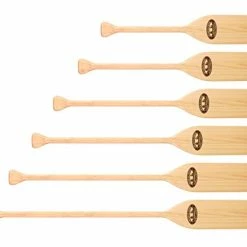 Natural finish New Zealand pine wood. Lightweight, but built for performance. Multi-ply laminated construction for strength. Waterproof polyurethane finish. Brown epoxy blade tips for durability. Traditional shaft and grip.