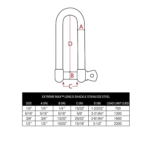 Extreme Max Shackles are constructed from marine-grade 316 stainless steel, offering excellent strength and durability even in the harshest marine environments. Not for use in overhead lifting applications. Working Load Limit: 1650 lbs. Shackle Size: 3/8″. See product images for exact measurement diagrams. Available individually or in value-packs of two or four.