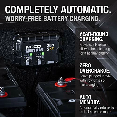 I fish the Great Lakes where safety and preparedness are primary concerns. I run dual batteries separated by switch to provide starter/engine and house/electronics. I only tax the engine to recharge the 1st bank and I use a kicker motor which recharges neither bank. When I get home I used to have to open all of my battery access doors and attach external tenders to top off the batteries for my next excursion. The NOCO GEN5x2 allows me to easily attach shore power to both banks tending each bank independently overnight. The unit stays installed in the battery compartment and automatically functions when power is applied.