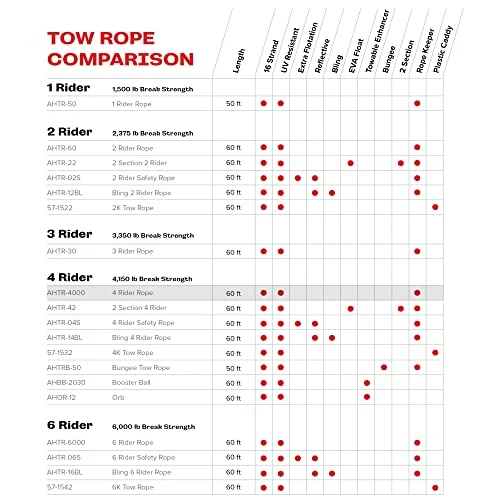 - Heavy-duty 1 section tow rope designed for 1-4 rider towable tubes