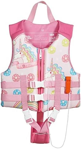 These life jackets are perfect. My twins love wearing these. They’re 8 years old and wear a size 6/8 and these fit great on probably the tight setting. There’s definitely room to grow but these are not too big. Perfect fit. They really like the cushion over the strap that goes between their legs they said it’s much more comfortable than their old life jackets that just had a single strap. They enjoy the whistle on the front. It doesn’t blow very loud when it’s wet, you have to blow the water out first but it’s s nice feature. It was very hard to find a non-toddler size jacket that still had the crotch strap so I was very happy to find this one. The crotch strap really helps when they’re wearing it all the time in the pool because it keeps the life jacket from riding up around their neck and it holds it in place around their chest. I would definitely buy this brand again.