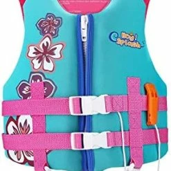 Lots of compliments from other parents on its colorful appearance. We love the crotch buckle that keeps it from slipping over the head – especially in our beach trips when playing in the surf. The handle is also great to get and easy hold and keep them upright in the surf.