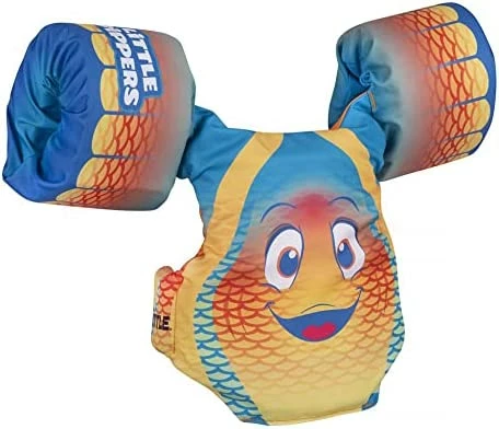 Just had to buy this pirate version for our son! We already had this pink princess version for my daughter (35 lbs) and it was a game changer! She hated the traditional style we had for her, it was challenging for her to move and feel in control. Our daughter went from crying and clinging to us with the traditional life vest on because she just couldnβt maneuver well and would either end up with her face in the water or on her back like a turtle. The great thing about this life jacket (puddle jumper) is that the front vest part comes lower than a puddle jumper brand giving the kids a little more support and naturally turns them on their backs. Our son is super excited that he is now big enough to wear one of these as well. The only down side we have found is that the back strap is starting to slip off of the padding on one side. Not sure if itβs just because our daughter plays hard in it, or if itβs just naturally slipping and starting to stay off the pad. Daughter hasnβt mentioned any pain or annoyance (yet) but I noticed it the last couple times she has worn it that itβs fairly consistent now. By the way we go boating every weekend and frequently during the week so these get worn a lot.The weight range for these are 30 lbs – 50 lbs.Fit Chest sizes 20β to 25βThey ARE U.S. Coast Guard Approved!Not to be used on PWCβs or boats longer than 40β.Not intended for towed sport use, use caution.