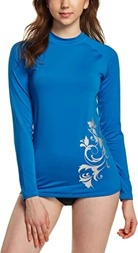 8 reviews for Wholesale π TSLA π© Women’s UPF 50+ Rash Guard Long Sleeve, Water Beach Surf Swim π Shirts, UV/Sun Protection Swimwear Henna Print Rashie Royal Blue π